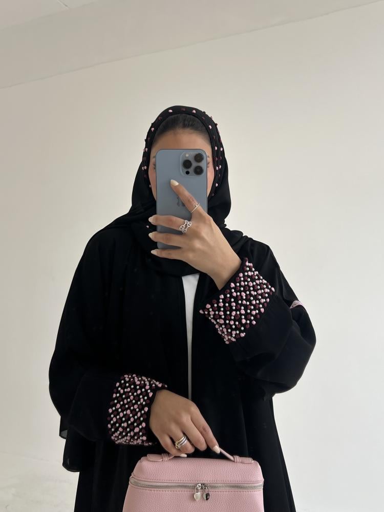 نوع القماش : كريب ملكي + تطريز ملكي مع لولو